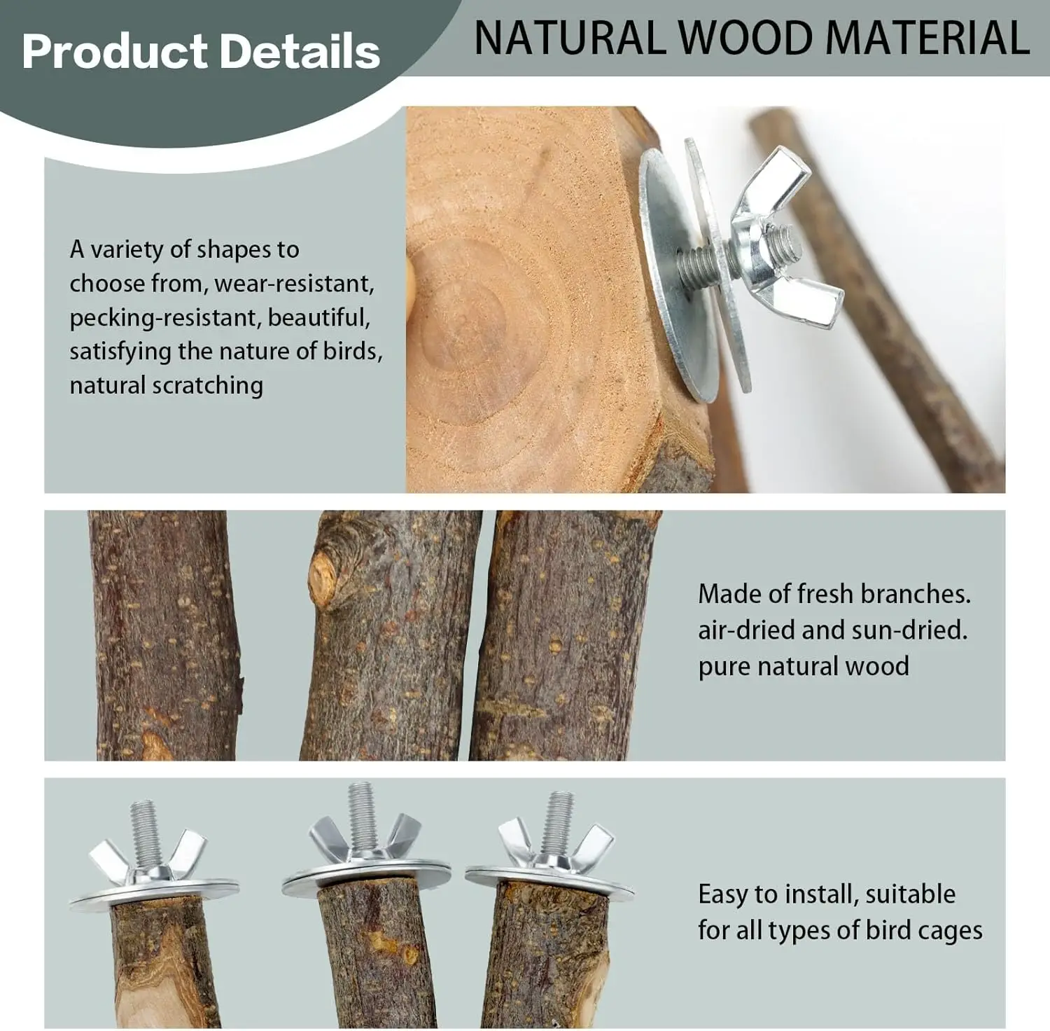 Give your feathered friends a natural and stimulating environment with this 8-piece wooden perch set, perfect for parakeets, budgies, cockatiels, lovebirds, and other small parrots.