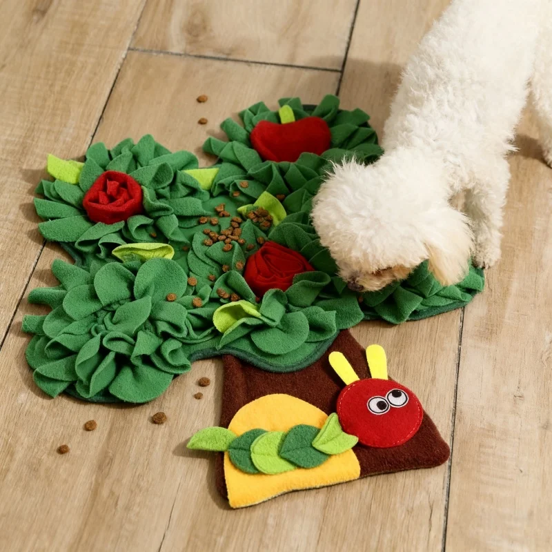 Interactive Sniffing Design – Hide your dog’s favorite treats in the apple tree-themed mat to encourage natural sniffing and foraging behavior.