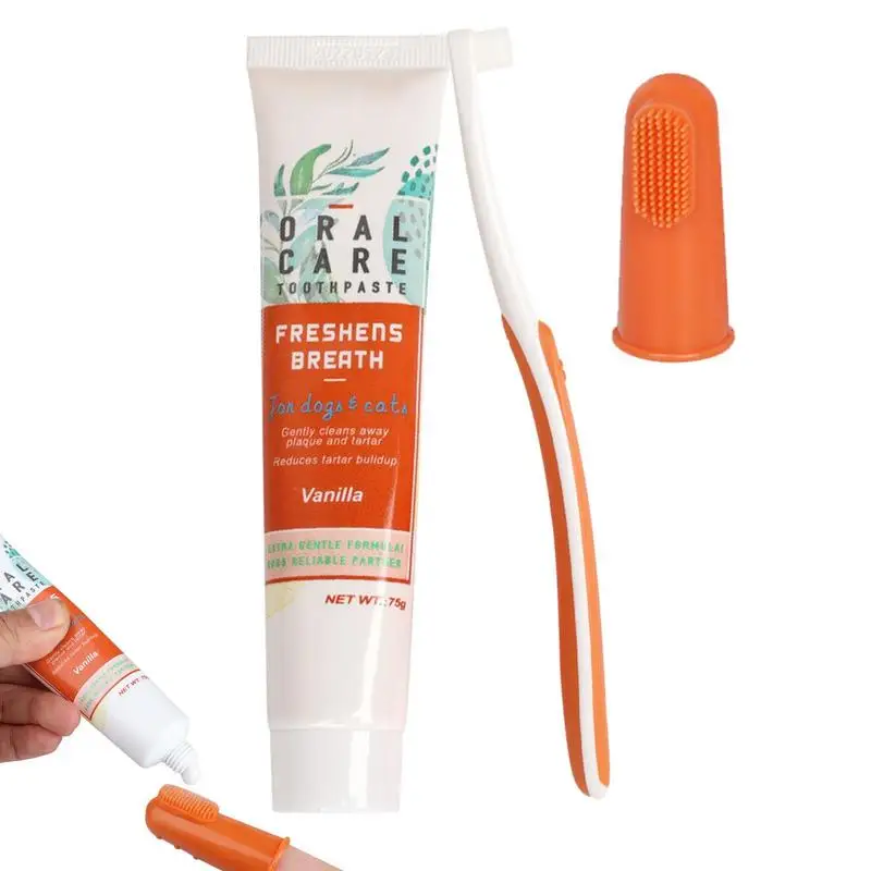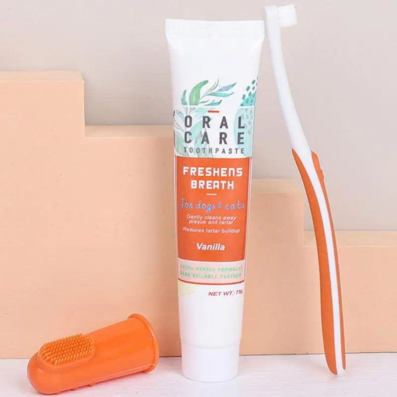 This cat dental care set is designed to support healthy teeth and gums. It includes a toothbrush and toothpaste for complete oral cleaning. The gentle vanilla-flavored toothpaste makes brushing more enjoyable for pets. A finger toothbrush allows better control and comfort during cleaning. Helps remove plaque and reduce tartar buildup effectively. Supports fresher breath and improved oral hygiene. Suitable for cats and small pets of all ages. The set also includes a tongue cleaning tool for thorough care. Made from pet-safe materials for daily use. This dental set makes at-home pet oral care simple and effective.