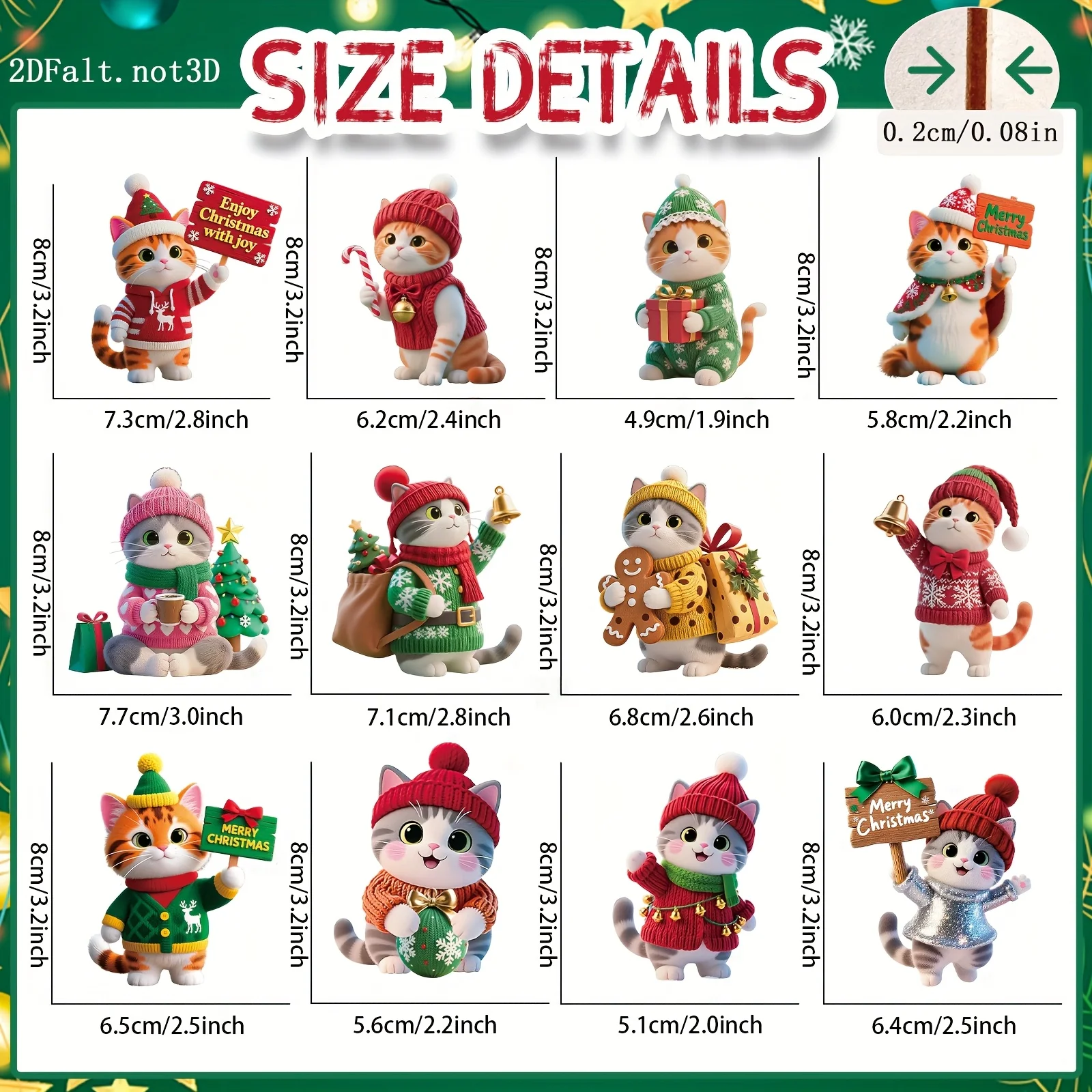 These Christmas wooden tree ornaments add a charming festive touch to your holiday décor. The set includes twelve beautifully designed 2D wooden plaques. Each piece features elegant cat-themed festival designs. Made from quality wood, they are lightweight yet durable. The smooth finish gives them a clean and polished look. Easy to hang on Christmas trees, wreaths, or walls. Perfect for holiday parties and seasonal home decoration. The flat 2D design makes storage simple after the holidays. Suitable for traditional, modern, or themed Christmas décor. These wooden ornaments bring warmth, charm, and festive spirit to any space.