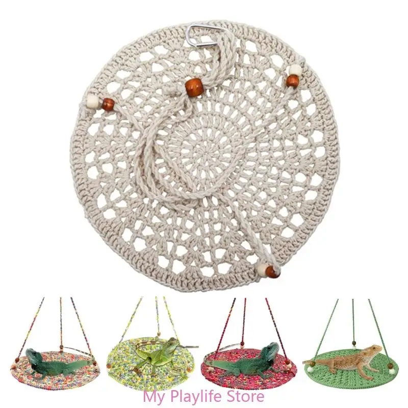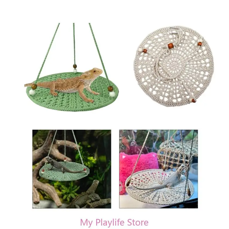 This reptile summer hammock provides a comfortable resting space for lizards and reptiles. Made from durable crocheted material, it offers a breathable and cozy surface. The round net design allows reptiles to lounge, climb, or bask comfortably. Ideal for bearded dragons, geckos, and other small reptiles. The hammock helps create a more enriching and natural habitat. Easy to install inside terrariums and reptile tanks. Lightweight yet sturdy construction supports daily use. Promotes exercise by encouraging climbing behavior. Suitable for warm weather and year-round habitat setups. This crocheted reptile hammock adds comfort, function, and style to your pet’s enclosure